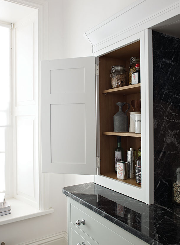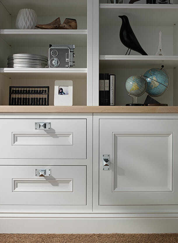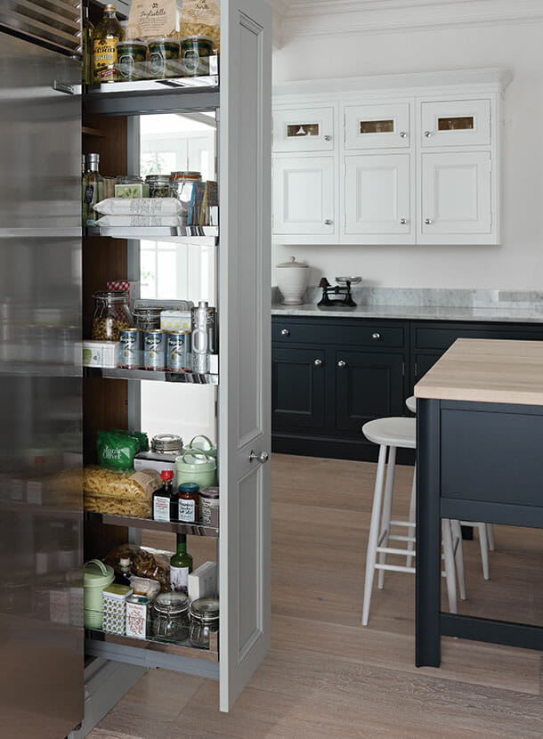 Behind each 1909 door there’s a place for everything, thanks to some very clever storage ideas. Choose from simple cupboards to plentiful pull-outs, pantries, drawers with customised partitions and bookshelves.