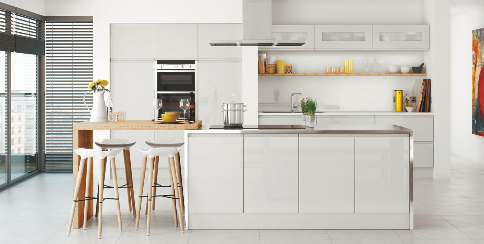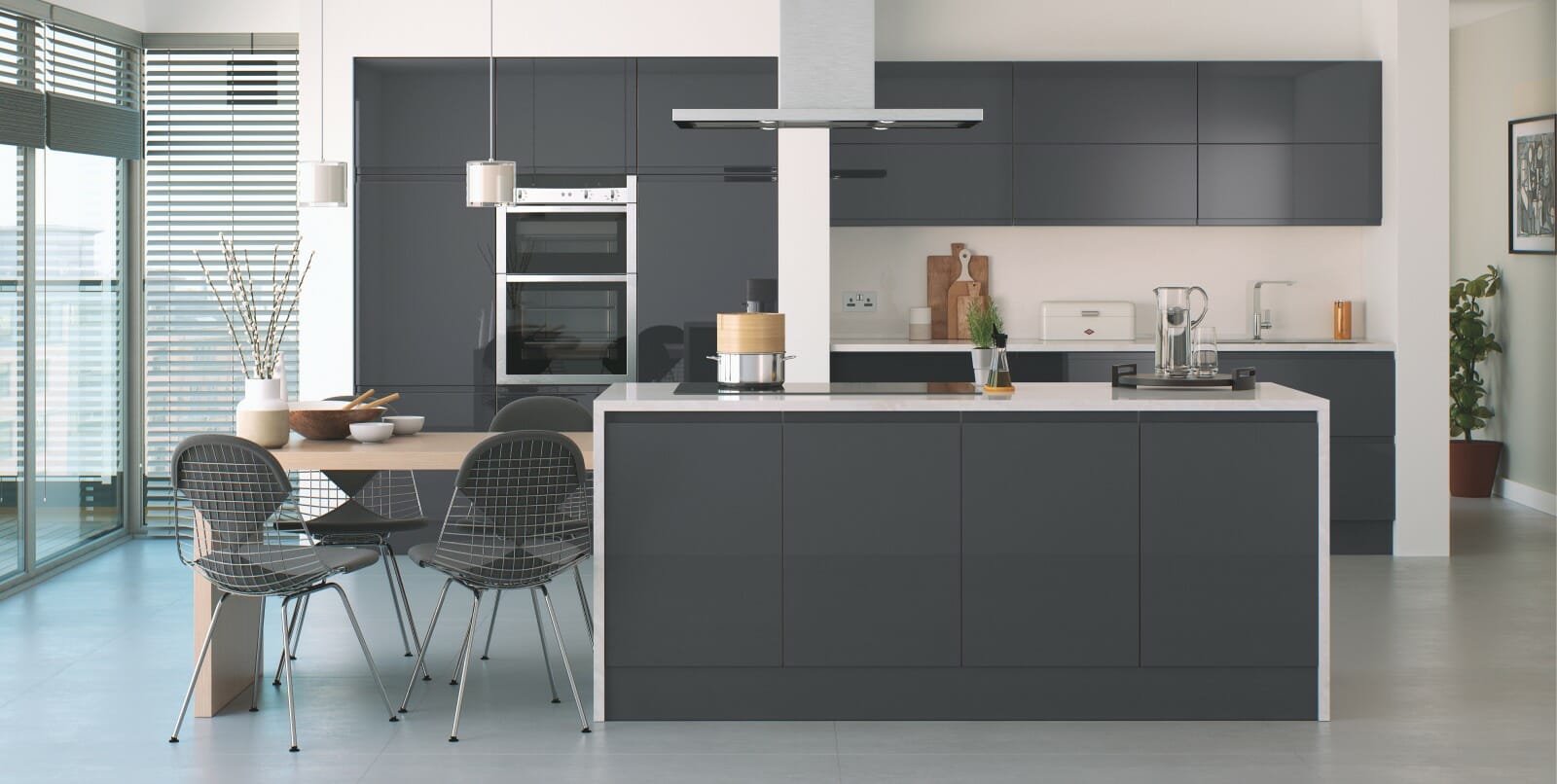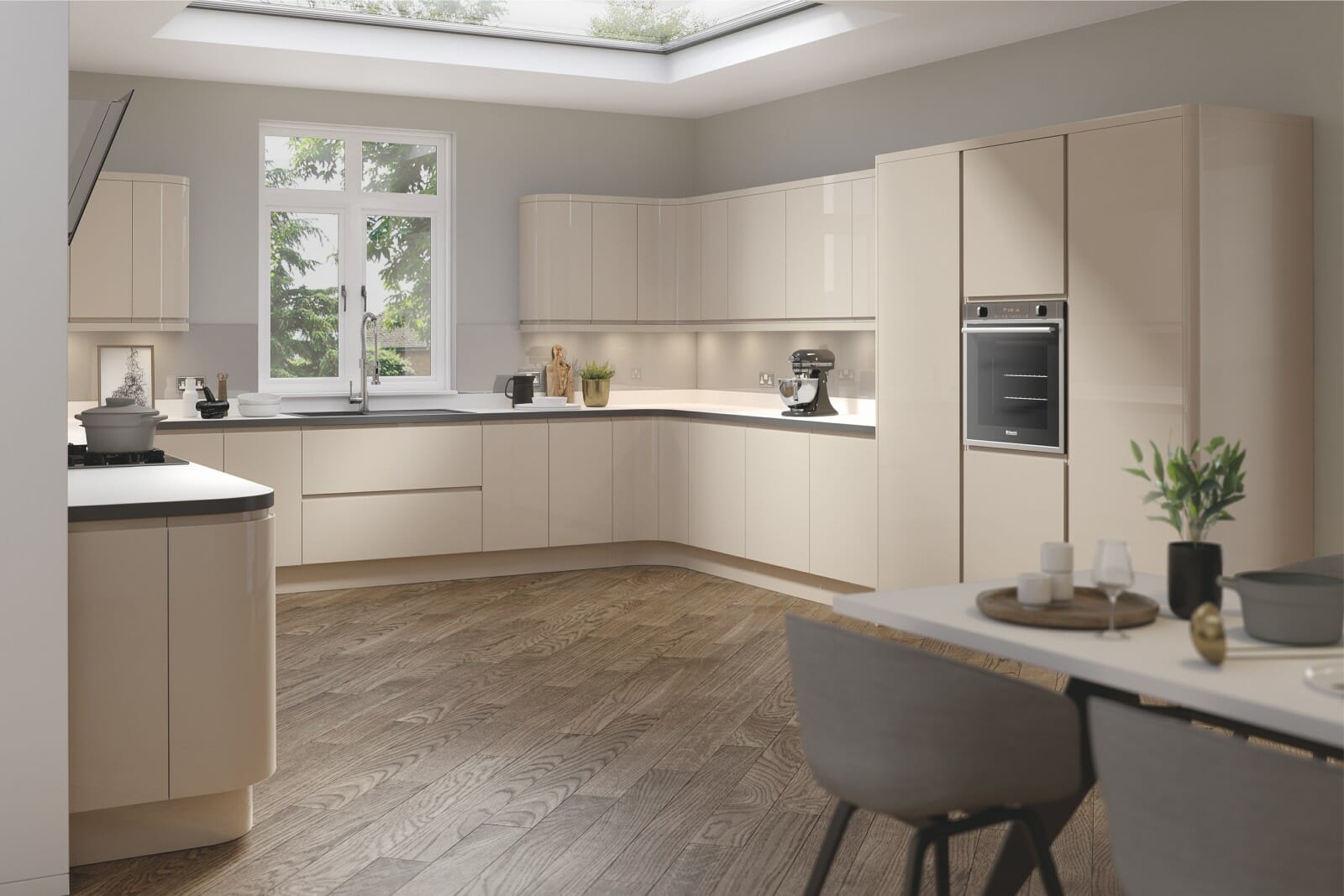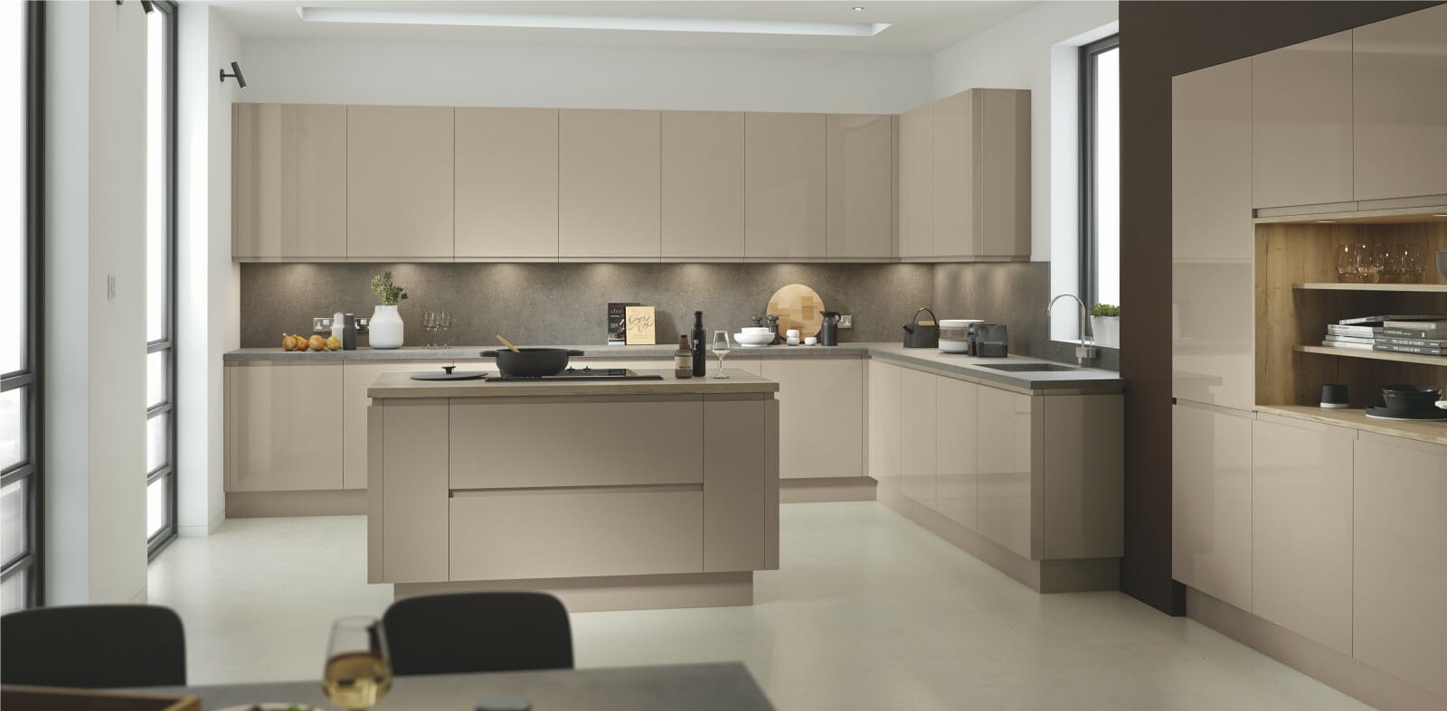 Lucente Gloss offers minimalist styling at its best with ‘J ’ pull designed doors creating handle-free kitchens with a smooth design. Painted gloss and matt finishes are both available in Lucente.